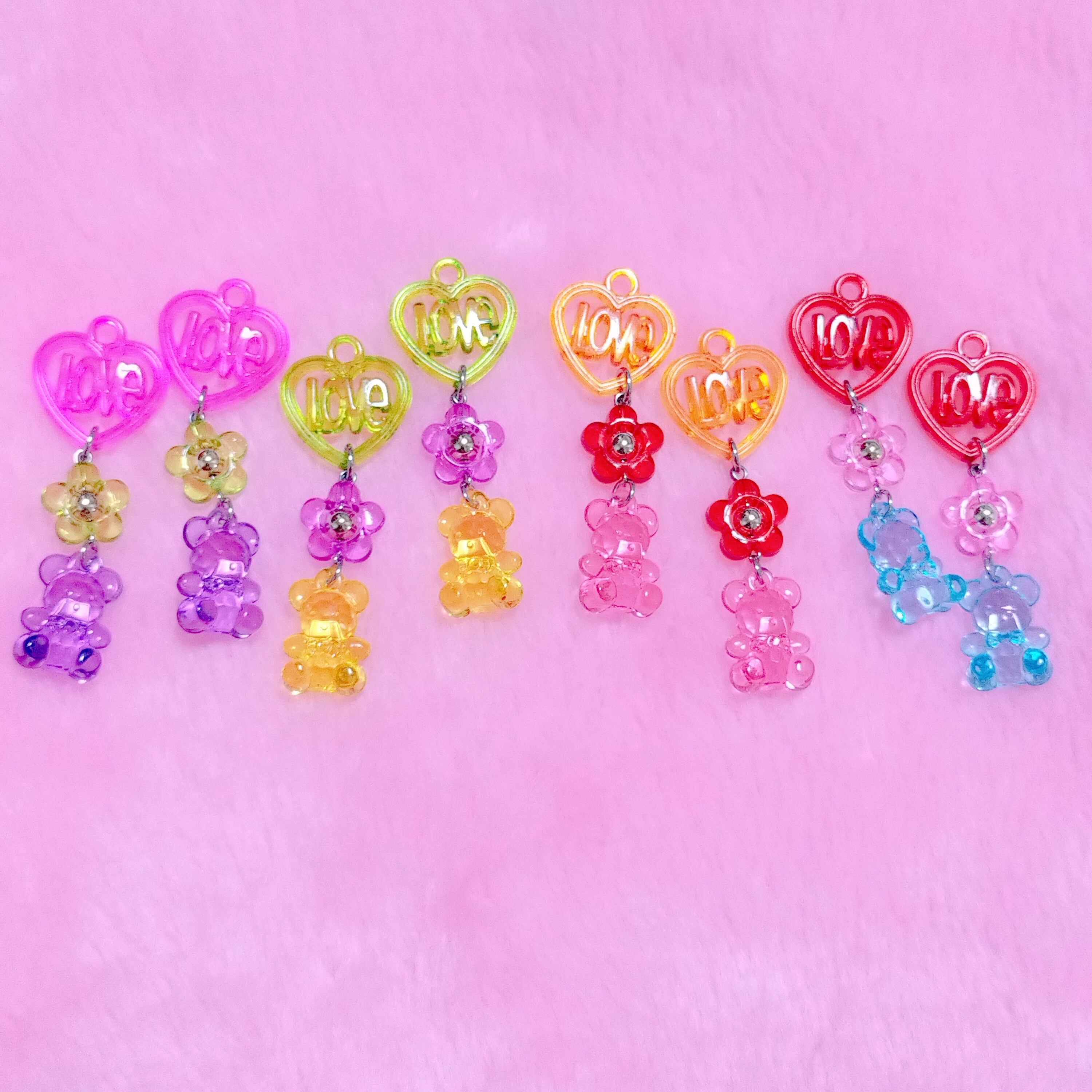 POPなフラワーとLOVEハートに平成レトロなおみやげ感のあるクリスタル風くまちゃんを合わせた、