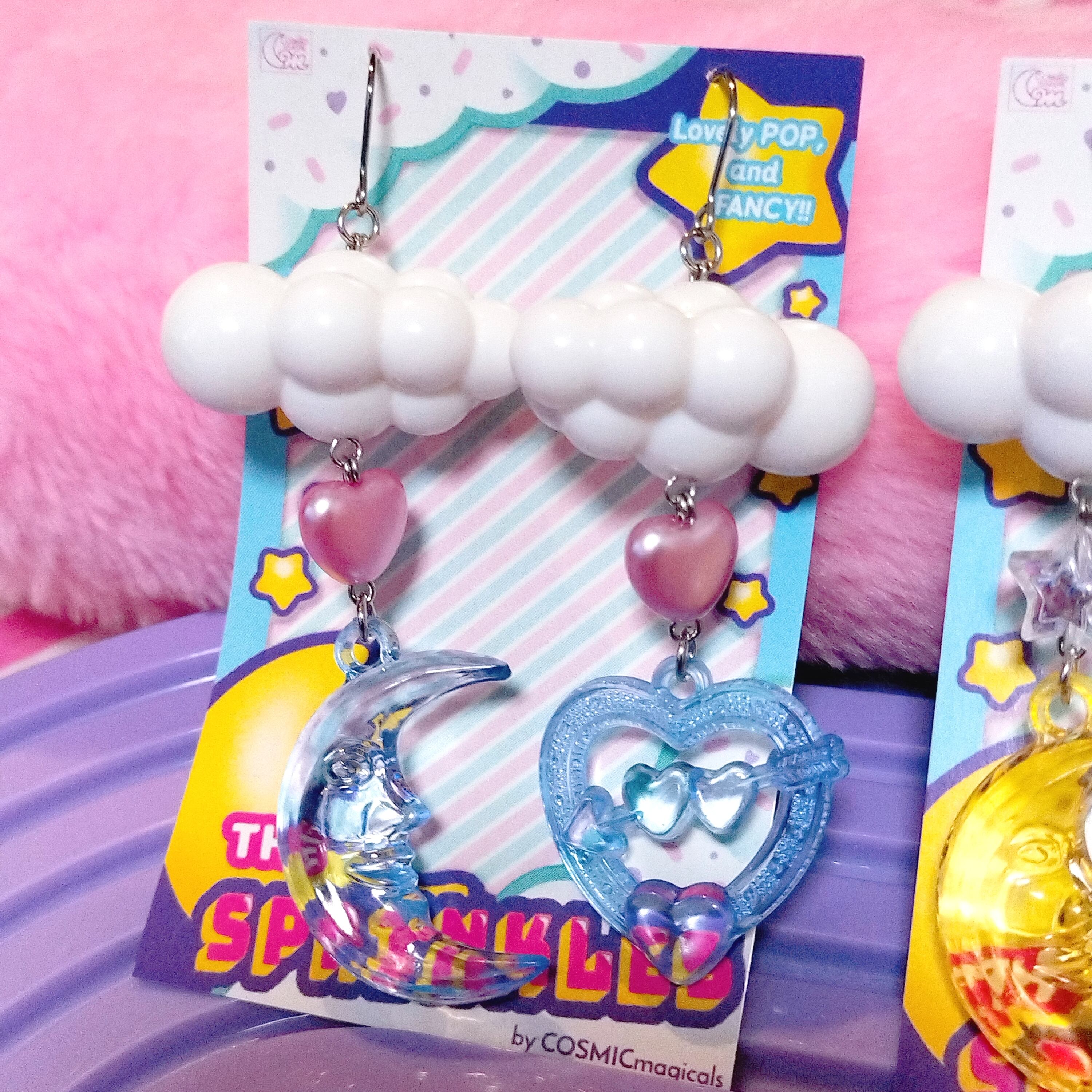 ハッピーでドリーミーなお空のモチーフを連ねたイヤリング♡左右で異なるチャームが揺れるアシンメトリーなデザイン☆