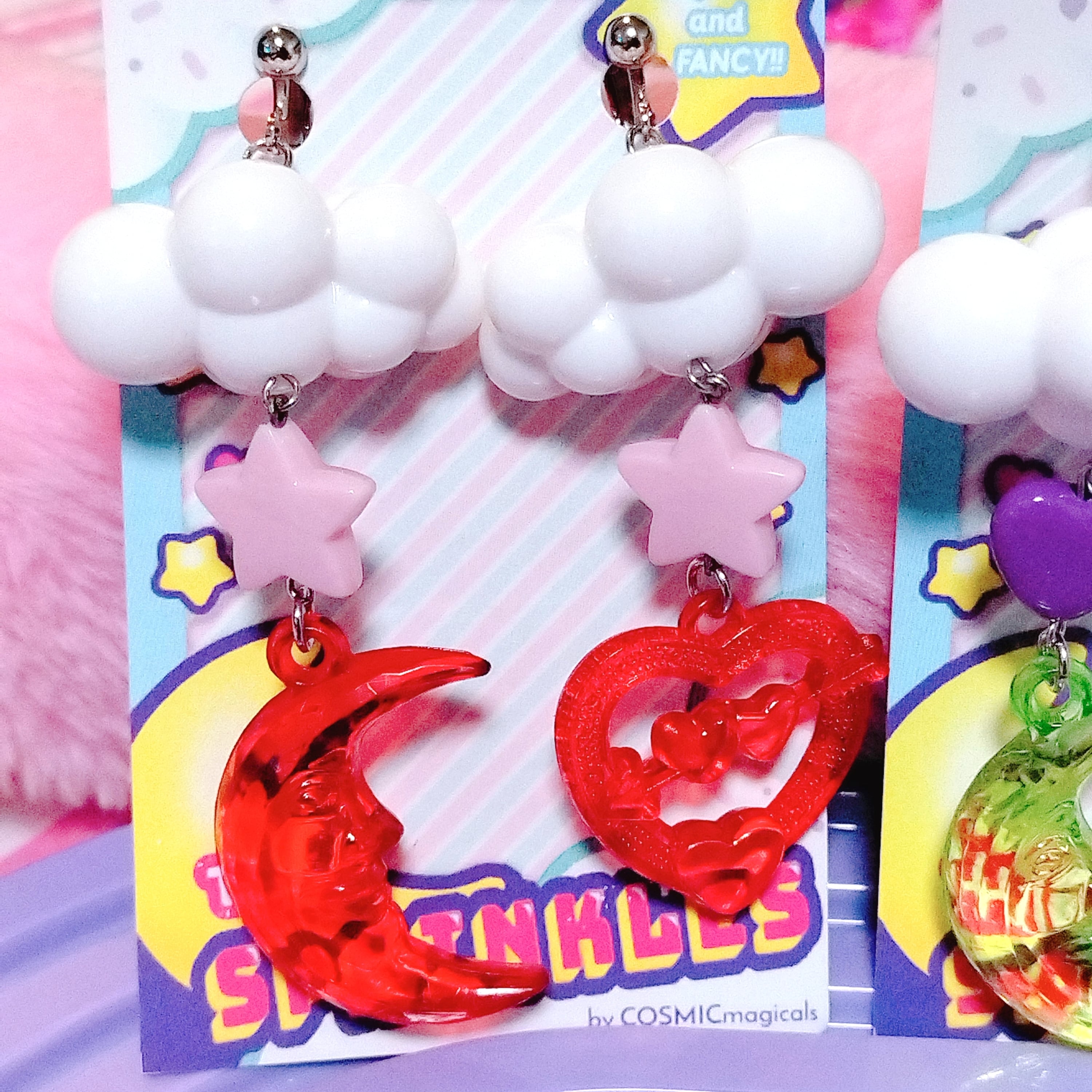ハッピーでドリーミーなお空のモチーフを連ねたイヤリング♡左右で異なるチャームが揺れるアシンメトリーなデザイン☆